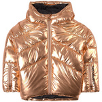 KARL LAGERFELD KIDS Kurtka dziewczęca puchowa z kapturem różowa
