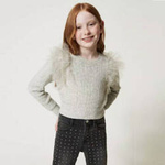 TWINSET Sweter dziewczęcy z tiulowymi falbankami