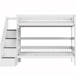 LIFETIME Kidsrooms Łóżko piętrowe niskie ze schodami 90x200 cm, whitewask