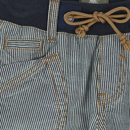 Spodenki chłopięce z delikatnego i miękkiego dżinsu w paski z kolekcji TIMBERLAND. Od wewnętrznej strony pasa guziczki do regulacji objętości (do rozmiaru 10). Skład: 100% Bawełna organiczna Należy prać w pralce w temperaturze 30°C