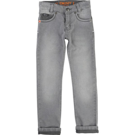 - Spodnie chłopięce dżinsowe w kolorze szarym z kolekcji DKNY. W pasie od wewnętrznej strony guziczi do regulacji objętości. Skład: 100% Bawełna Należy prać w pralce w temperaturze 30°C