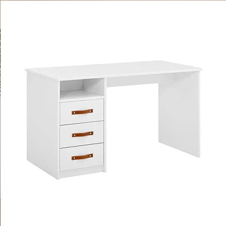 - Eleganckie biurko do nauki, zabawy lub rysowania. Standardowo wyposażone jest w 3 szuflady z cichym domykiem. Zapewnia mnóstwo miejsca do przechowywania. Stylowe skórzane uchwyty.