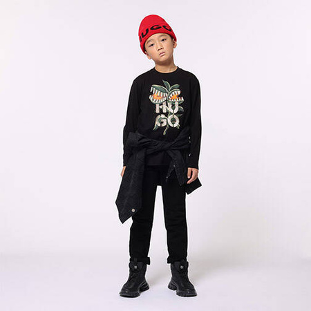 HUGO T-shirt chłopięcy z długim rękawem z nadrukiem czarny